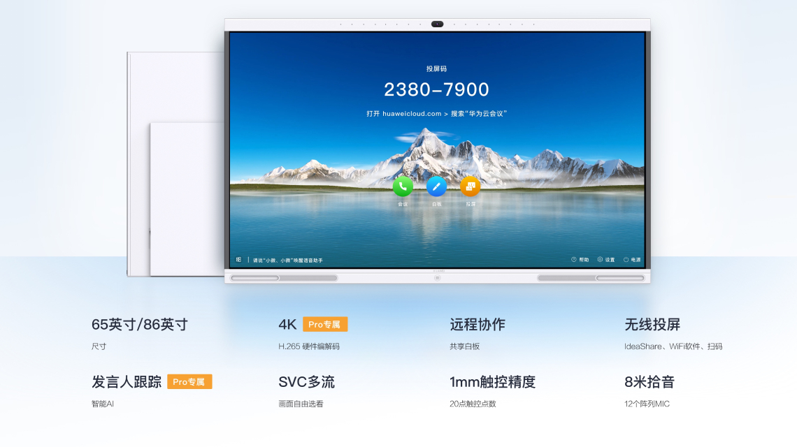 内置华为云会议,即插即用;顶配双SOC设计,独立的图形计算+AI计算+音视频编解码引擎,提供专业级智真会议体验;扫码一键入会、智能语音助手,无需繁杂操作即可快速入会。