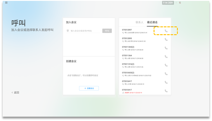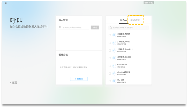 当会议或联系人在近期开过会,可通过查找最近通话记录,快速发起呼叫。