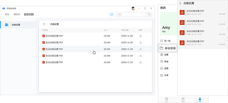 打开华为云会议客户端,进入“会议空间 > 白板纪要”查看。