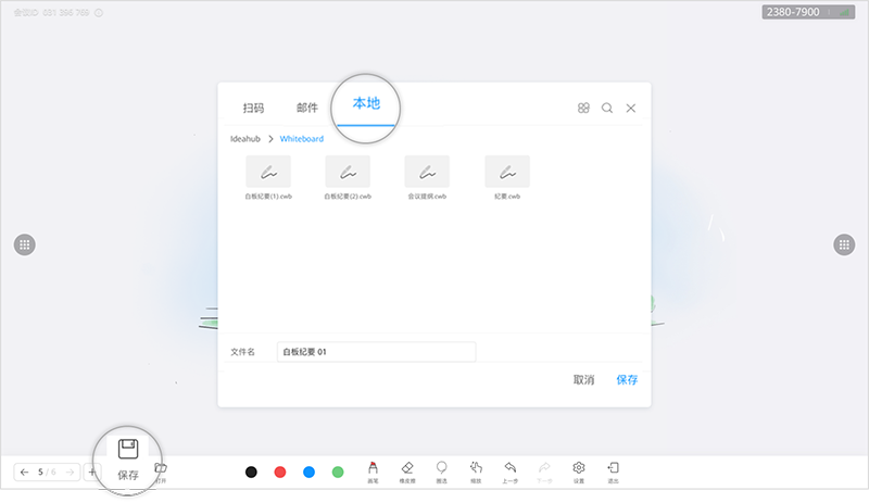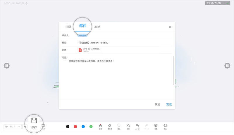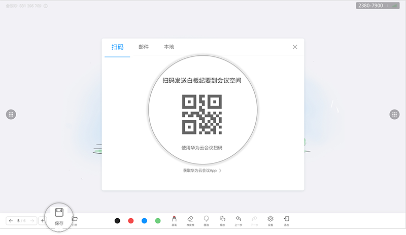 点击左下角的“保存”,可以通过扫码、发送邮件、本地保存等方式保存白板。