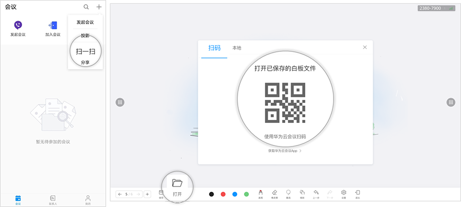 可以使用华为云会议移动客户端扫码保存白板内容。