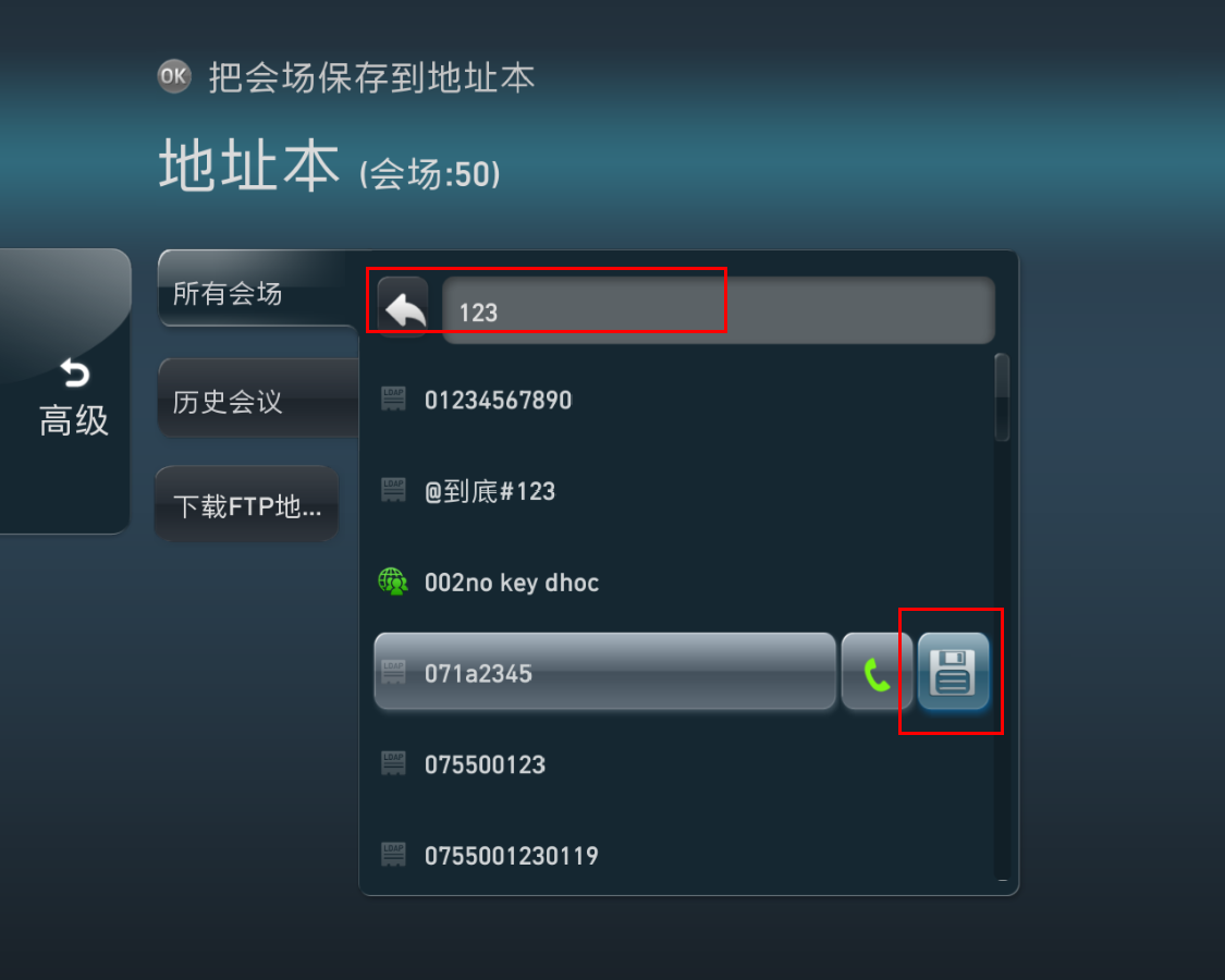 华为视频会议终端TE系列通过遥控器保存企业地址本到本地具体操作步骤: