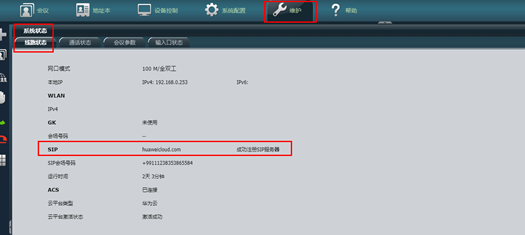 6、网络中对IP地址做了限制或IP与已使用的IP地址冲突,切换个IP地址或拔掉网线终端连接手机热点查看维护 > 系统状态中SIP状态是否正常。