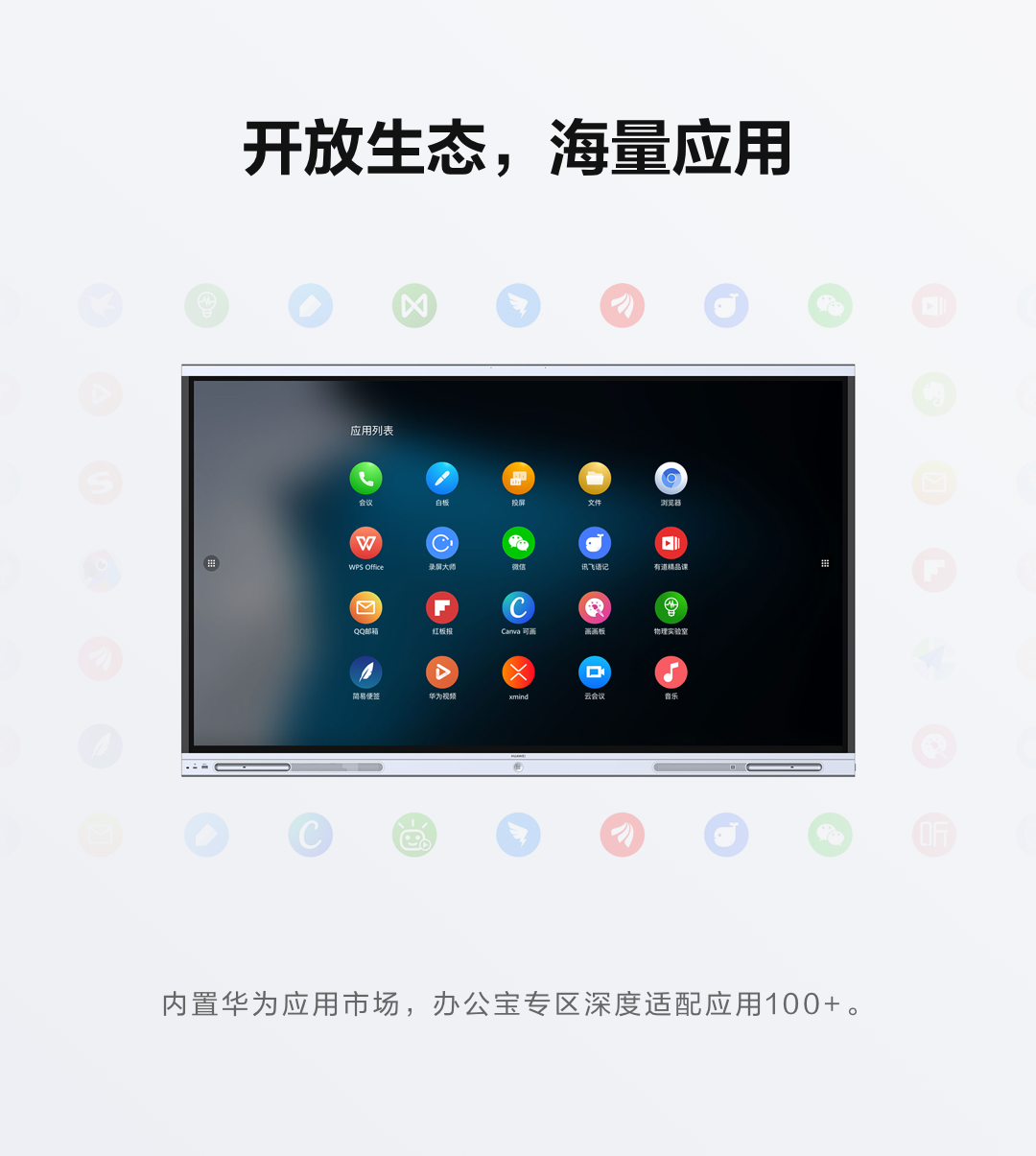 华为办公宝IdeaHub Board,旨在让更多的会议室,享有智能化的工作方式,让更多的教室,享受到高效而且健康的互动教学体验。华为办公宝IdeaHub Board融合了柔光护眼、华为变屏,智绘妙笔等一系列黑科技,集合海量专属大屏应用,端云协同,加速企业办公的智能升级。