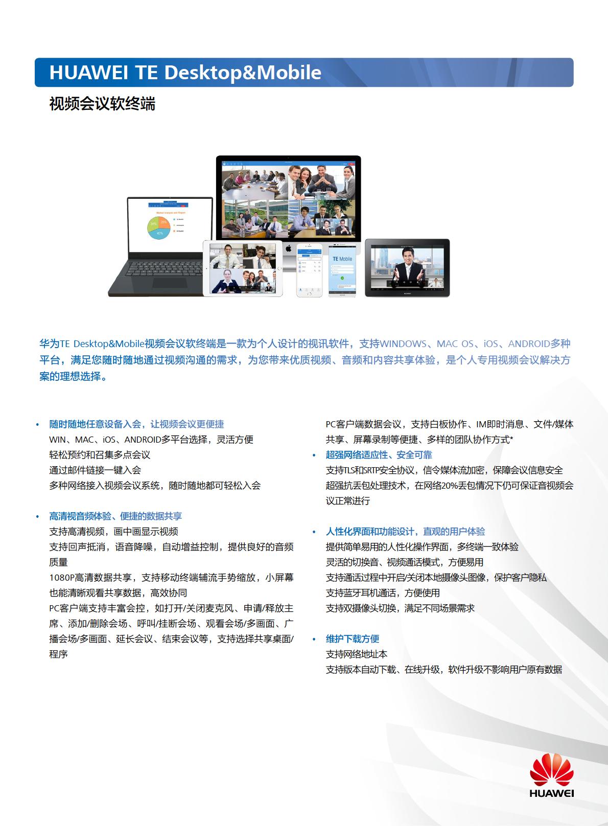 支持高清视频、回声抵消、语音降噪等,提供良好的视音频体验;高清数据共享,支持移动终端辅流手势缩放,小屏幕也能清晰观看共享数据,高效协同。